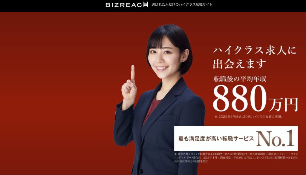 ビズリーチは高所得、ハイクラス向けの転職エージェントで、他とは少し異なります。
