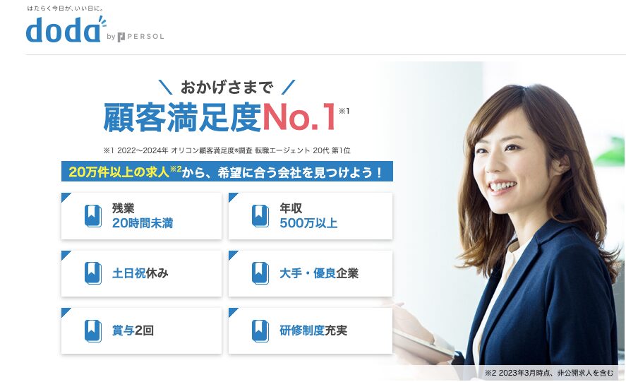 CMでも有名なdodaは求人数からエージェントのサポートまで充実した転職エージェントです。