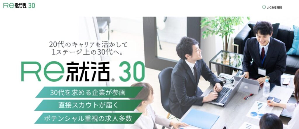 Re就活30は、20代のキャリアを活かしてさらに上を目指すための、30代の転職に特化したサービスです。