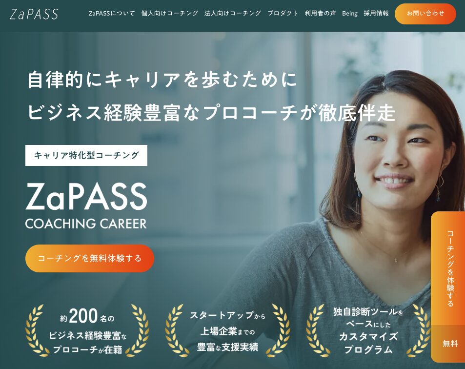 ZaPASSコーチングキャリアは、4,000名以上のデータをもとに独自のプログラムを開発し、1人1人に最適なカスタマイズプログラムを提案してくれる、キャリア特化型のコーチングです。