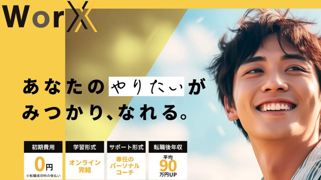 WorXは「スキルアップ+コーチング+エージェント」をすべて合わせたようなサービスで、未経験から新しい業界・業種への転職を実現できます。