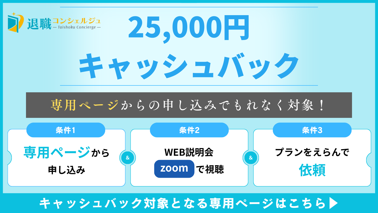 退職コンシェルジュでは2026年2月現在、下記の専用ページから申し込んで成約に至った人を対象に、25,000円のキャッシュバックを行なっています。