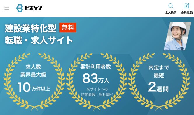 ビズケンは、業界最大級の求人数の取り扱いがある、建設業界専門の就職転職情報サイトです。