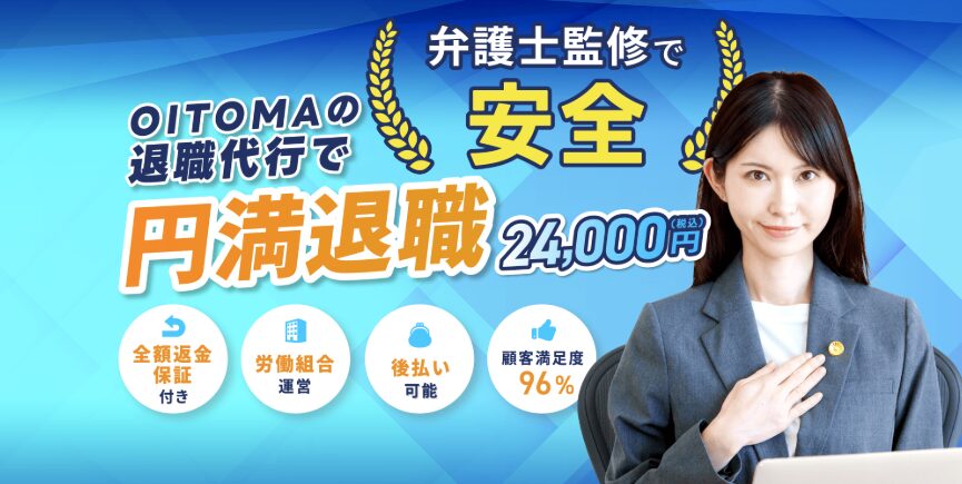 退職代行OITOMA(オイトマ)は後払いも可能で全額返金保証もついている、安心感の高い退職代行サービスです。