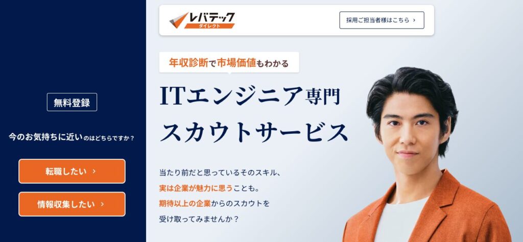 「レバテックダイレクト」は、レバテック株式会社が運営するITエンジニア・デザイナー向けのダイレクトスカウトサービスです。