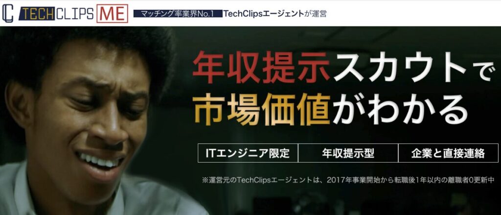 また、同社はエージェントサービス「テッククリップエージェント」も運営しており、スカウトで縁がなかった場合や、キャリア相談をしたい場合はこちらも利用できます。