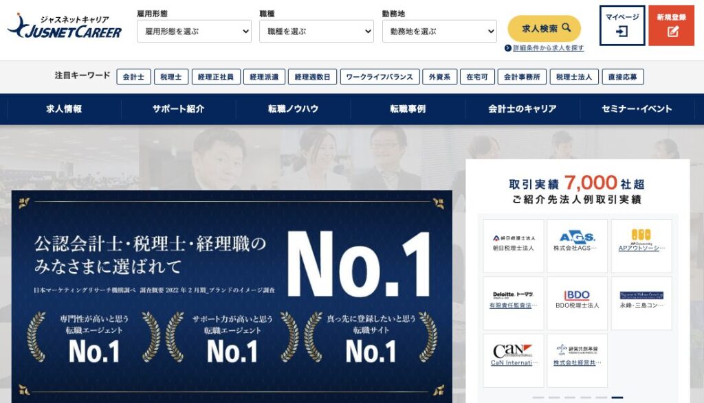 ジャスネットキャリアは、会計、税務、経理・財務分野に特化した転職エージェントです。