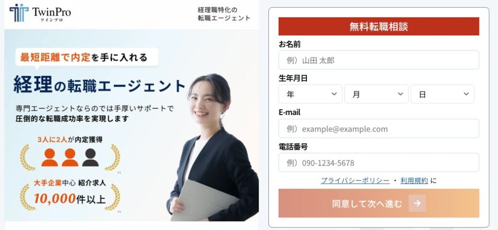 ツインプロは、税理士・公認会計士・経理・財務人材に特化した転職エージェントです。